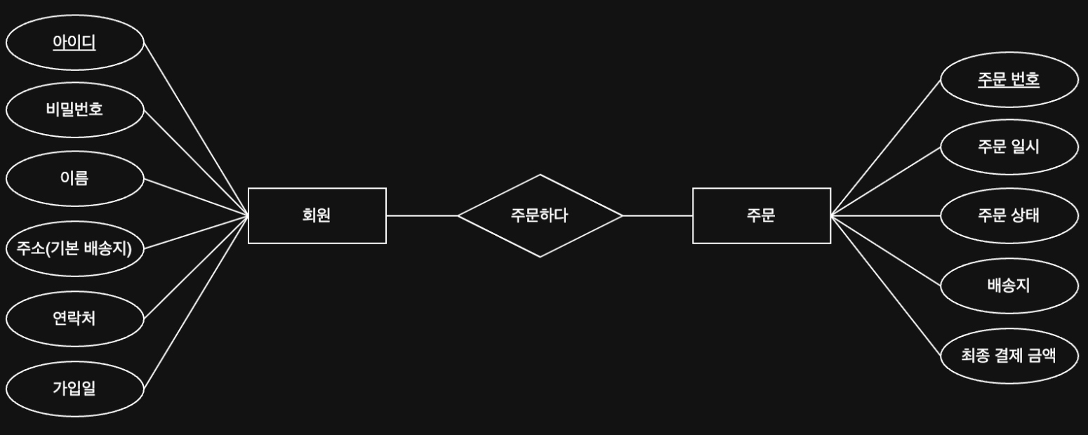 - ์ฃผ๋ฌธ โ ํ์ ๊ด๊ณ๋ ํ์(Mandatory): ์ฃผ๋ฌธ์ ๋ฐ๋์ ํ์๊ณผ ์ฐ๊ฒฐ๋์ด์ผ ํ๋ค.