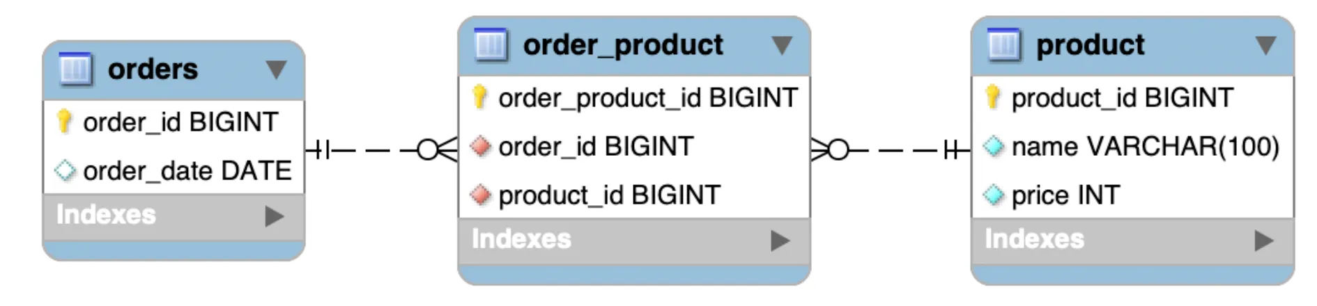- '์ฃผ๋ฌธ'๊ณผ '์ํ' ํ ์ด๋ธ์ ์ง์ ์ ์ผ๋ก ์ฐ๊ฒฐํ๋ค๋ ๊ด๊ณ๋ฅผ ์ด๋ฆ์ ๋ช ์์ ์ผ๋ก ๋ณด์ฌ์ค๋ค.
