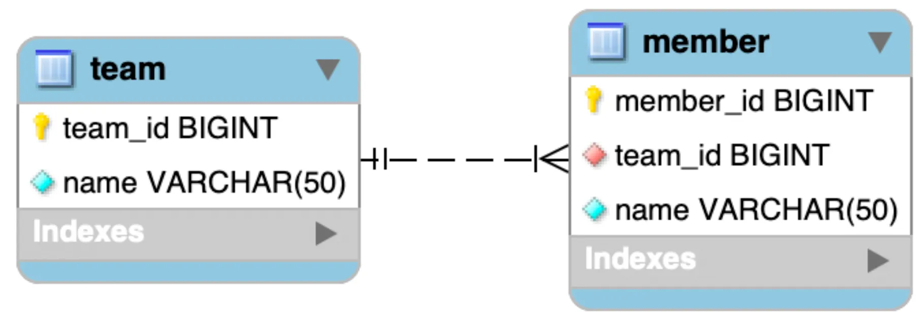 - FK๋ ๋จ์ผ ํ๋ง ์ฐธ์กฐํ๋ค: ํ ๊ฐ์ด ์ ํํ ํ๋์ ํ์ ๊ฐ๋ฆฌํจ๋ค.